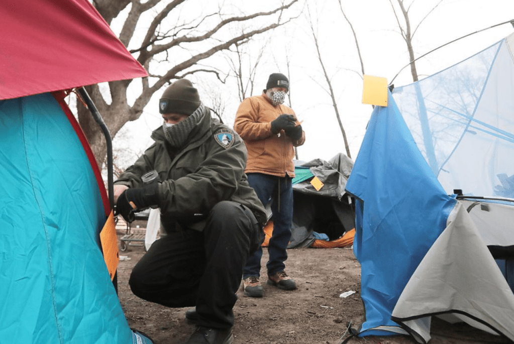 It’s inhumane to move people out of cold tents to heated homes in December. This week, after tolerating a messy, unsanitary and dangerous homeless encampment at Reindahl Park for over a year, the city finally acted to dismantle it. They waited too long, but credit the Council and Mayor for finally acting, and credit city staff for a smart, detailed plan to provide good quality alternative housing. The city is providing 30 heated tiny house units on the southeast side and 35 hotel rooms near Reindahl in addition to another 100 run by Dane County. Nonetheless, a homeless advocate said that the few remaining campers were being moved, “so fast.” “There’s a sense of shock,” she said of the process that started a good six months ago. And activists placed a sign to greet city workers in charge of cleaning up the mess: “Breaking up community during the holidays is wrong. Shame on you Madison.” The sign refers to this “community” situated illegally in a city park where workers want to get it cleaned up before the snow hides the needles and where, by the way, “community” members get to huddle in tents as the temperatures dip below zero.