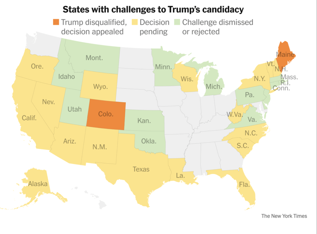 Donald Trump has been denied ballot status in two states while challenges are pending in several others, including Wisconsin. The argument is that he’s guilty of insurrection and so ineligible under the 14th Amendment.