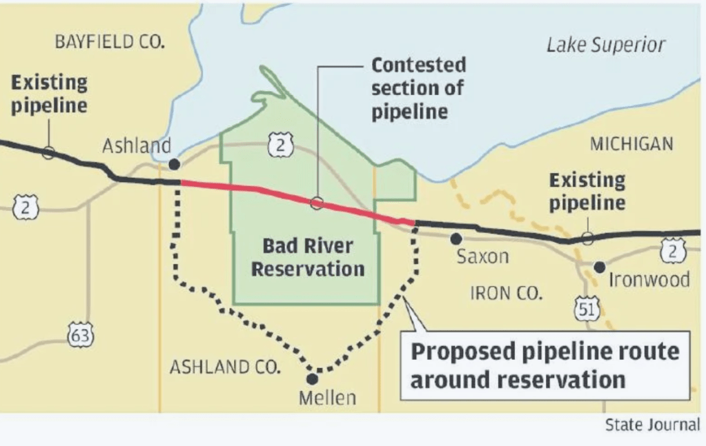 Here’s a quick recap of this folly. In 2019, a coalition of environmental groups led by Midwest Environmental Advocates and the Bad River tribe, sued in Federal court to get the pipeline removed from tribal land, which it had crossed since 1953. The court agreed and ordered the line removed by June of 2026.