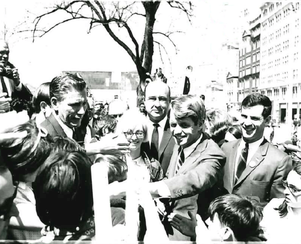 Kennedy’s appearances in Indiana that month were electric, as they were in much of the country. He was actually pulled from a convertible during a parade in downtown Gary. In places like South Bend, it helped that he was joined on the stump by his brother-in-law, Prince Stanslaw Radziwill, a real Polish prince, who spoke to the crowd in Polish. And earlier that April he had delivered those heart-wrenching and eloquent spontaneous remarks in Indianapolis on the night Martin Luther King was murdered. But he was in Indianapolis only because he was campaigning in the state’s primary.